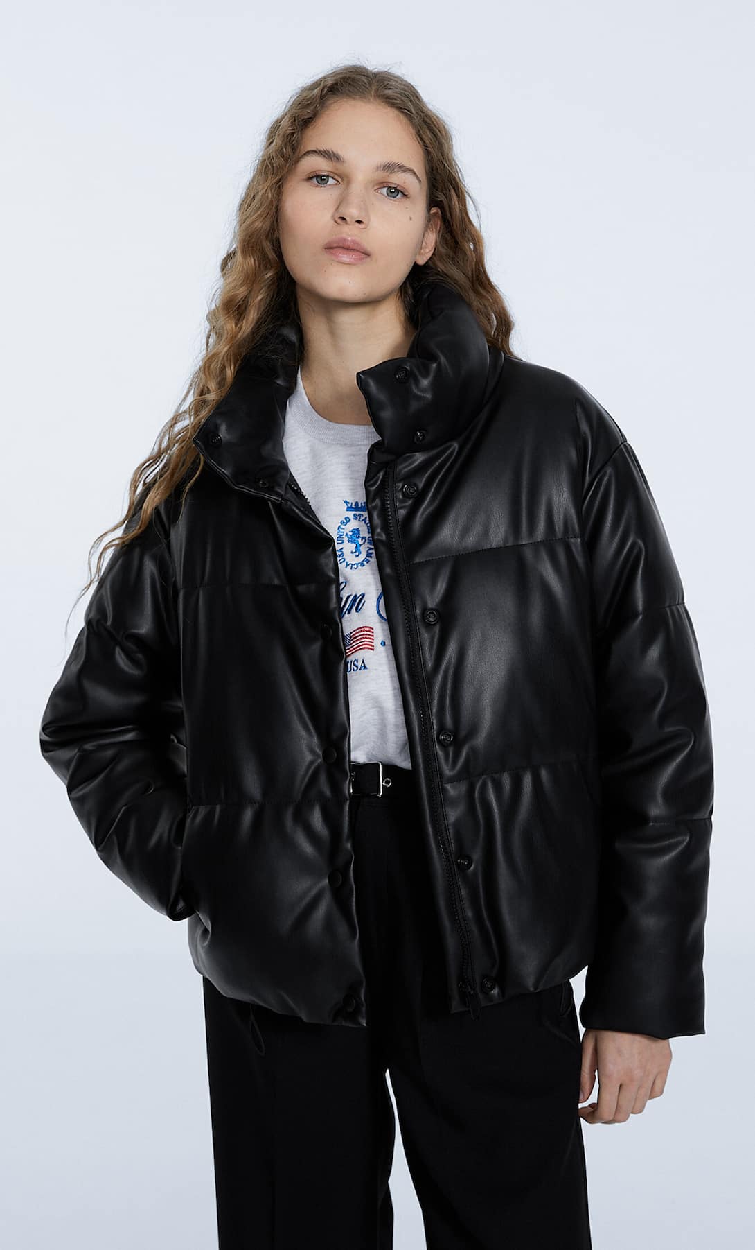 معلومات المنتج. جاكيت منفوخ من الجلد الصناعي برقبة عالية. جيوب جانبية مع بطانة من الصوف. إغلاق بسحاب أمامي وغطاء بأزرار كبس. متوفر بألوان مختلفة. . الجزء الخارجي: 50٪ بولي يوريثان ، 50٪ بوليستر . البطانة: 100٪ بوليستر