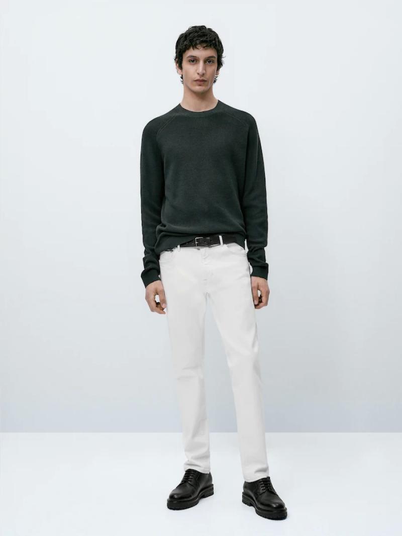 .نسيج ميلانو متماسك..مصنوع من 100٪ قطن..غَيْرُ رَسْمِيّ..عنق برقبة دائرية..حواف مضلعة.