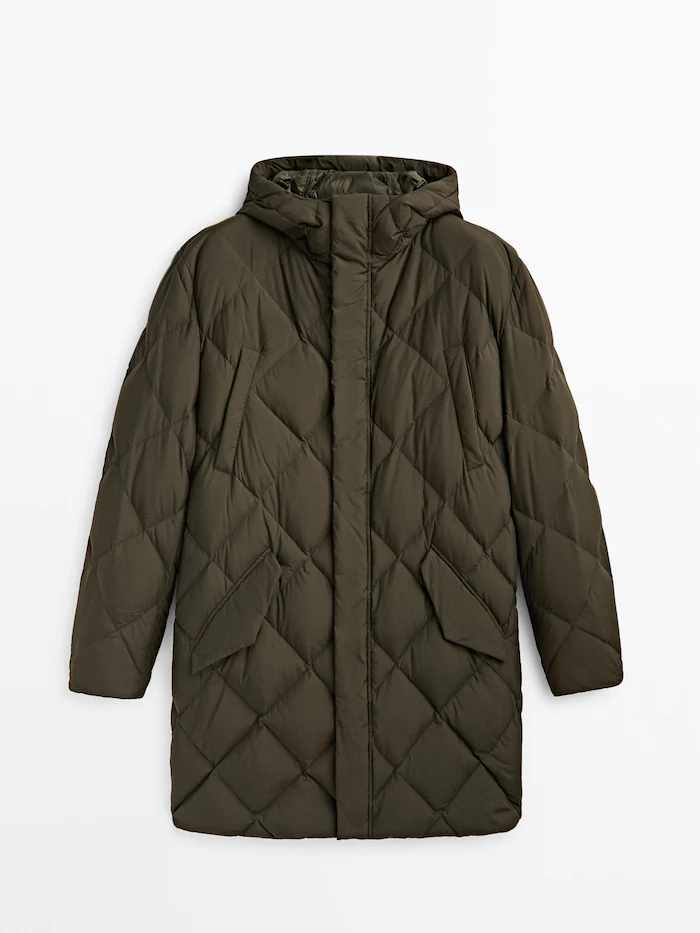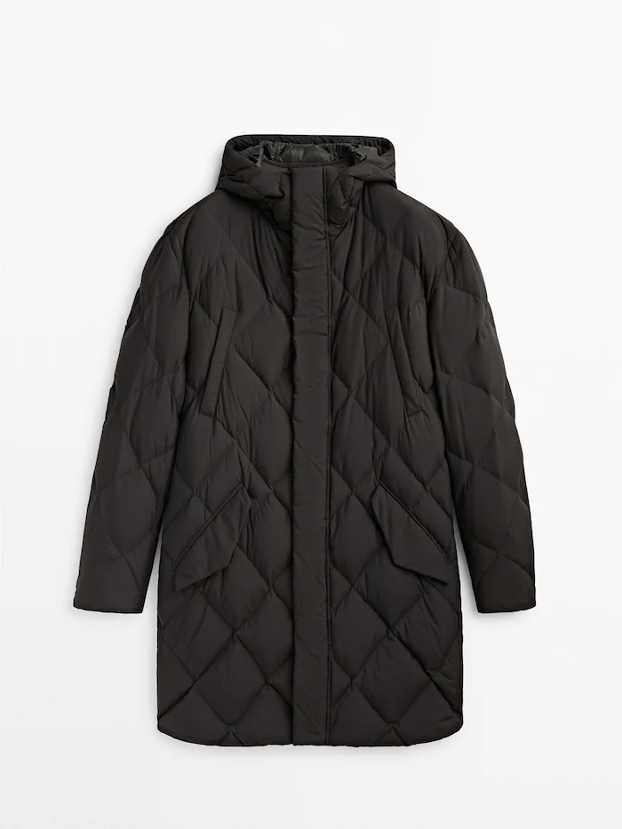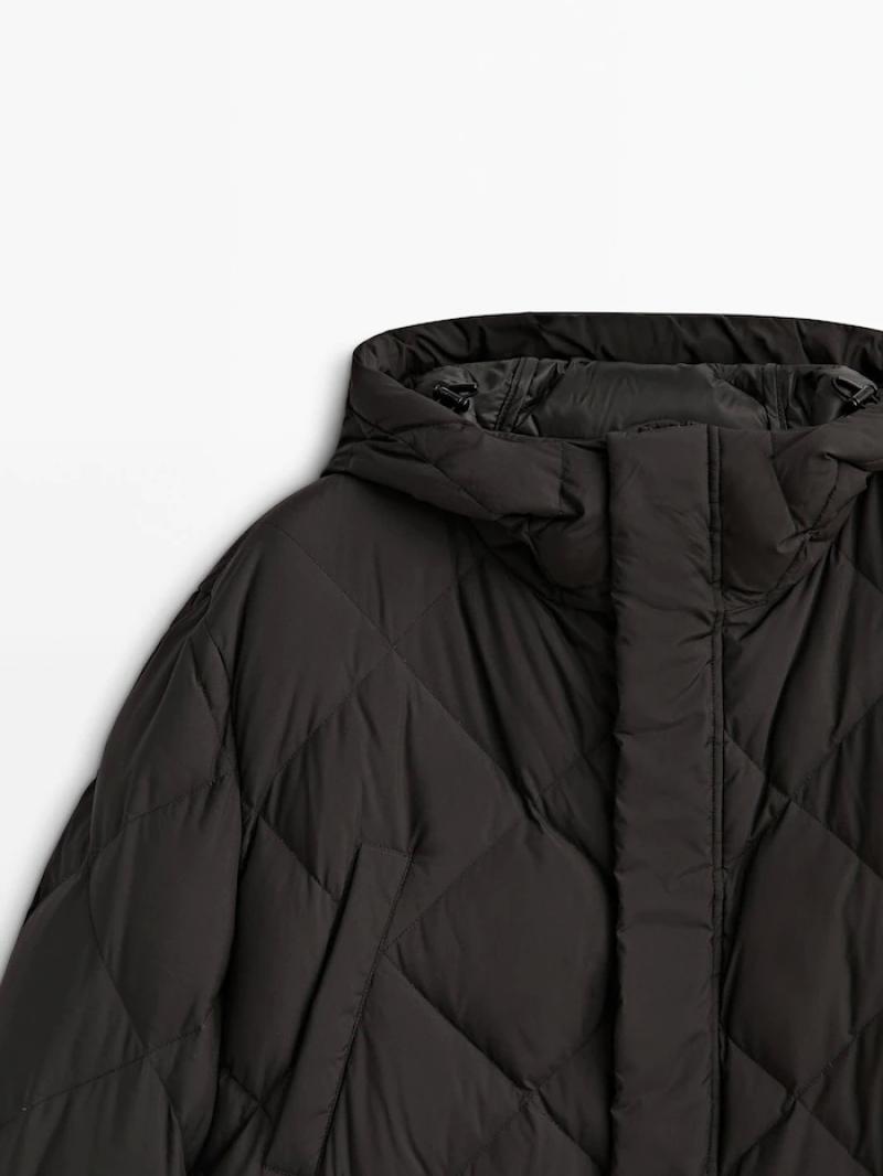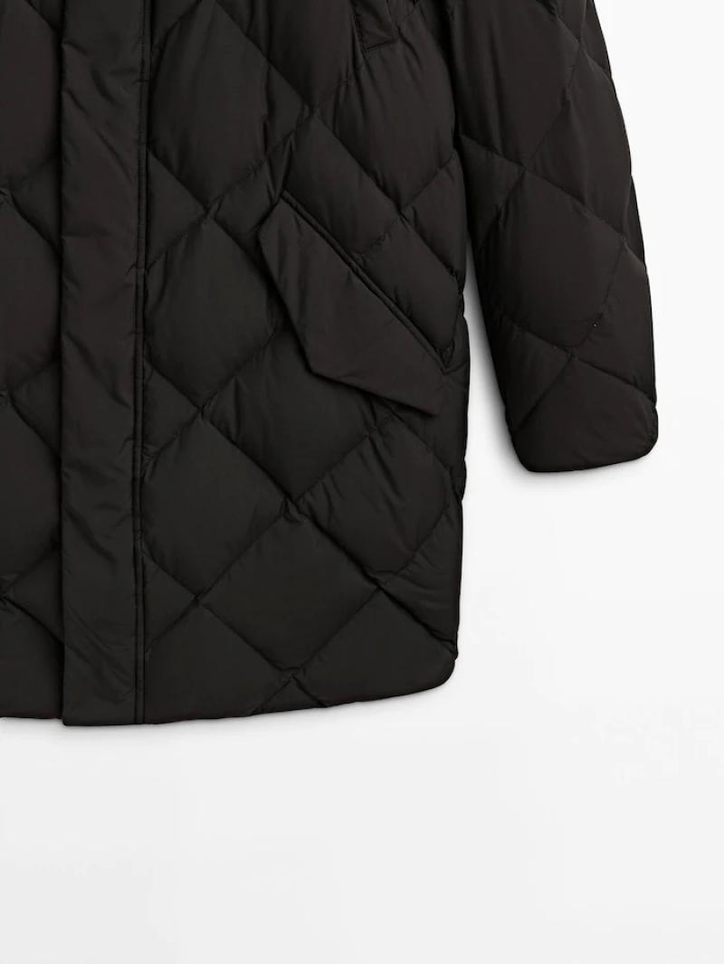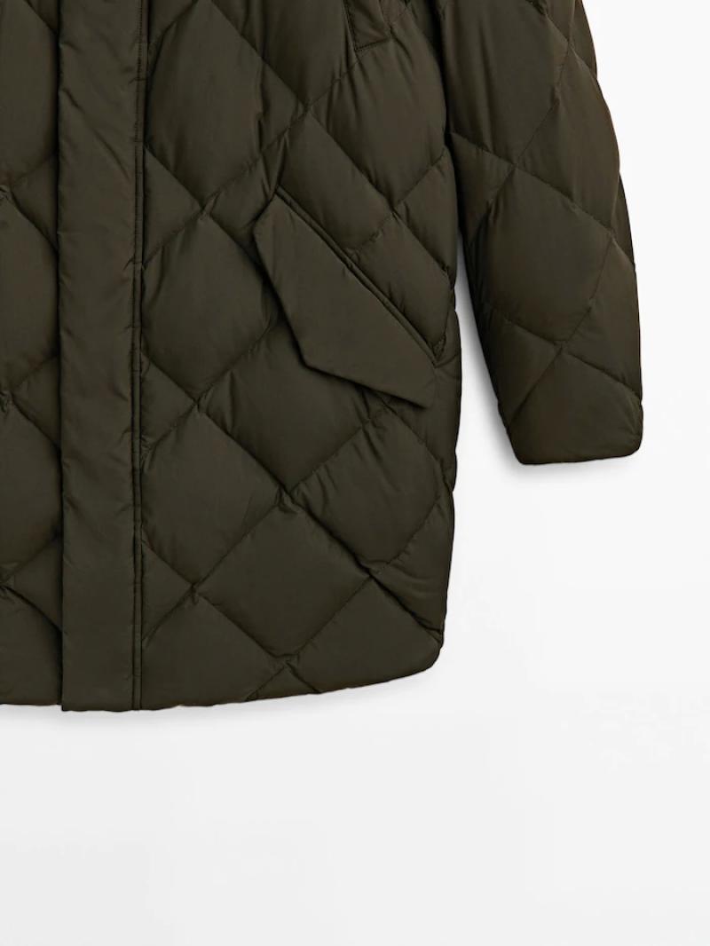 .مضادة للماء..نسيج خفيف ودافئ لطيف الملمس..غطاء قابل للتعديل..إغلاق بسحاب في اتجاهين مخفي بواسطة فتحة بأزرار كبس..اثنين من الجيوب على الصدر..اثنين من الجيوب ذات الأزرار..مبطن.