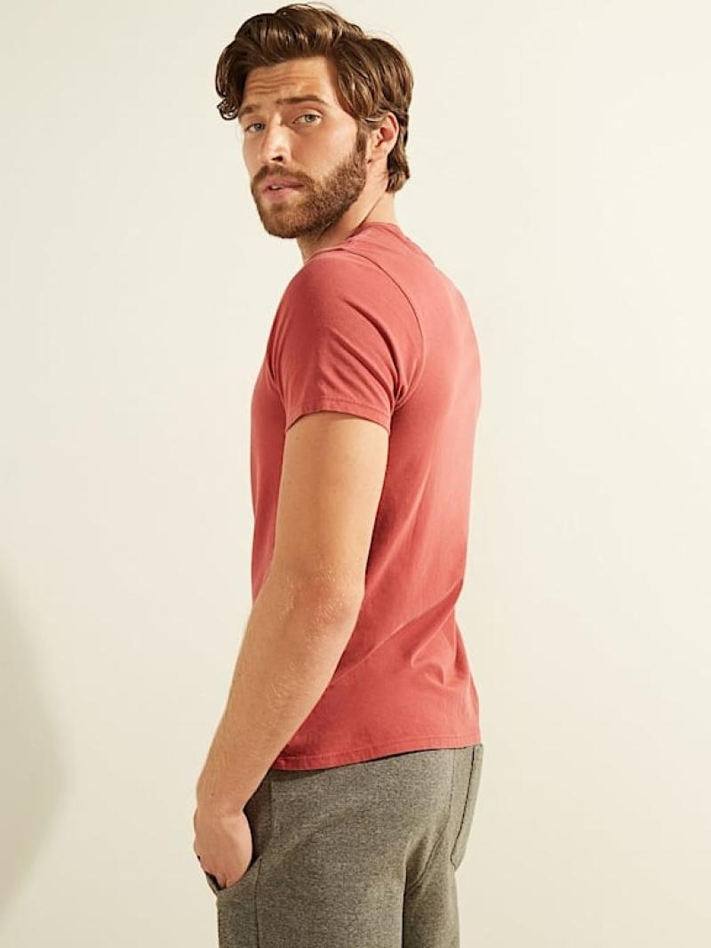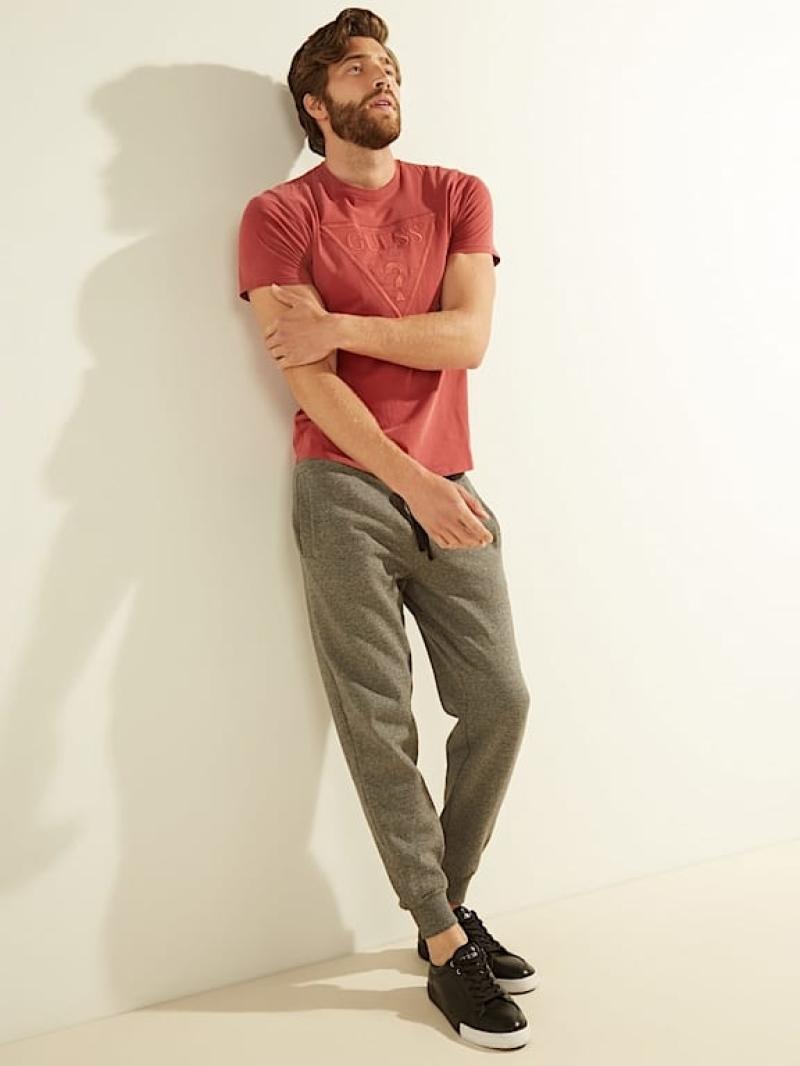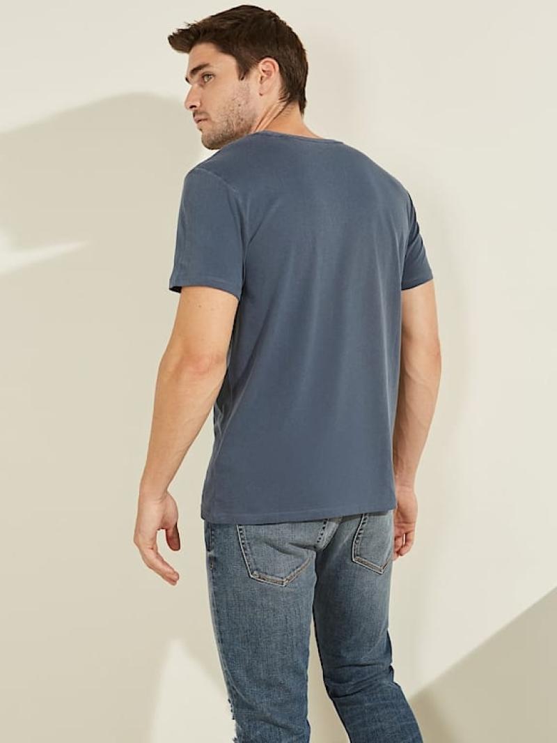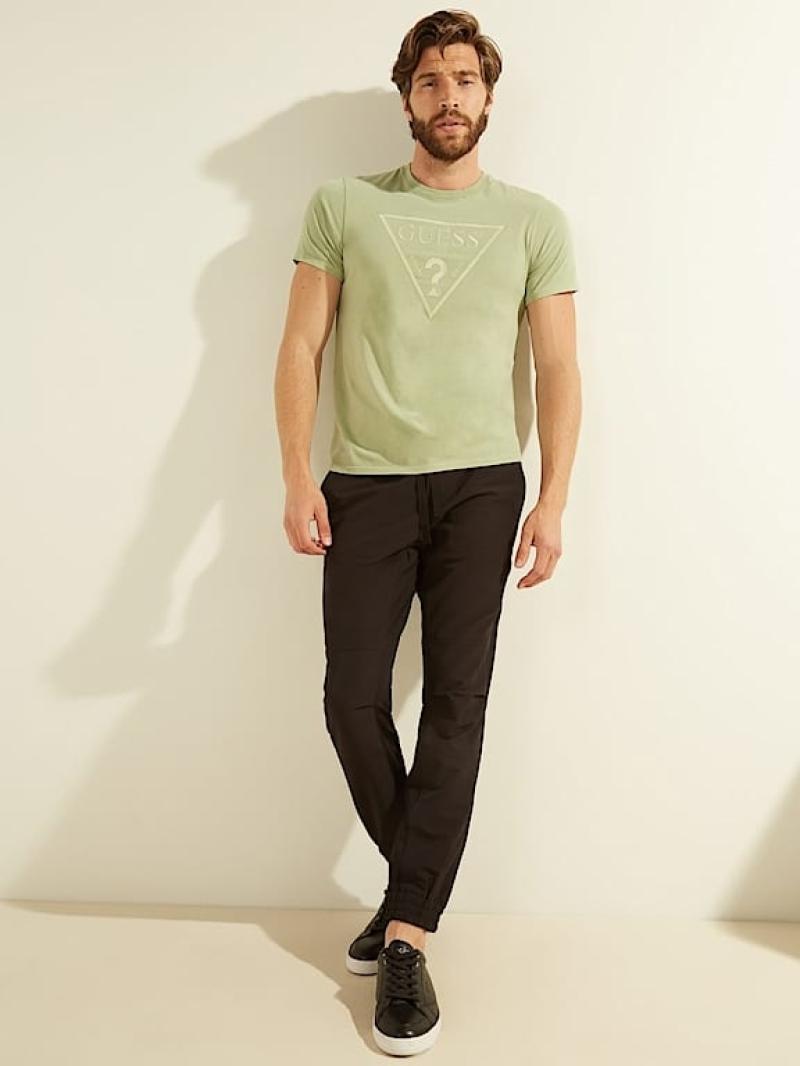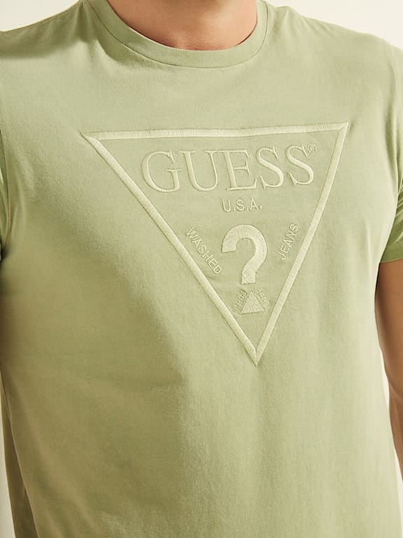 .تي شيرت من نسيج قطني..شعار على شكل مثلث في الأمام..طوق دائري..ذراع قصير..تناسب وثيق.