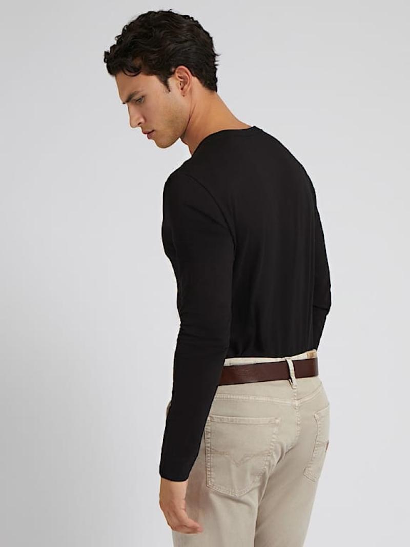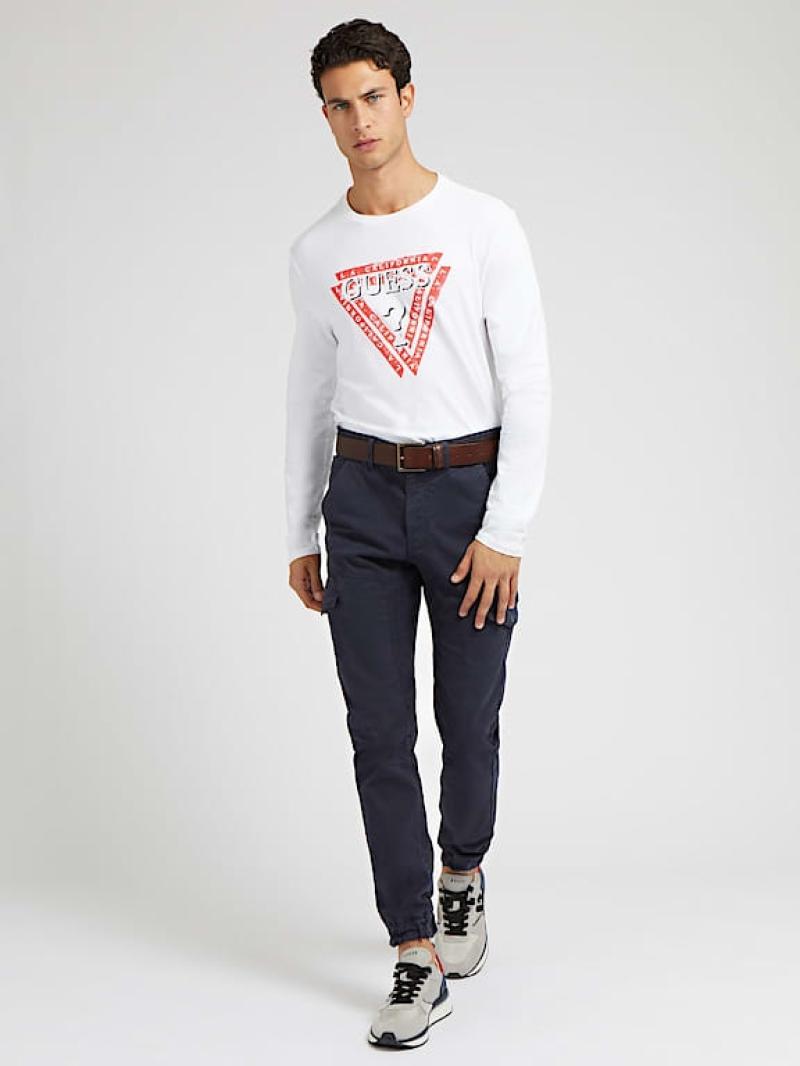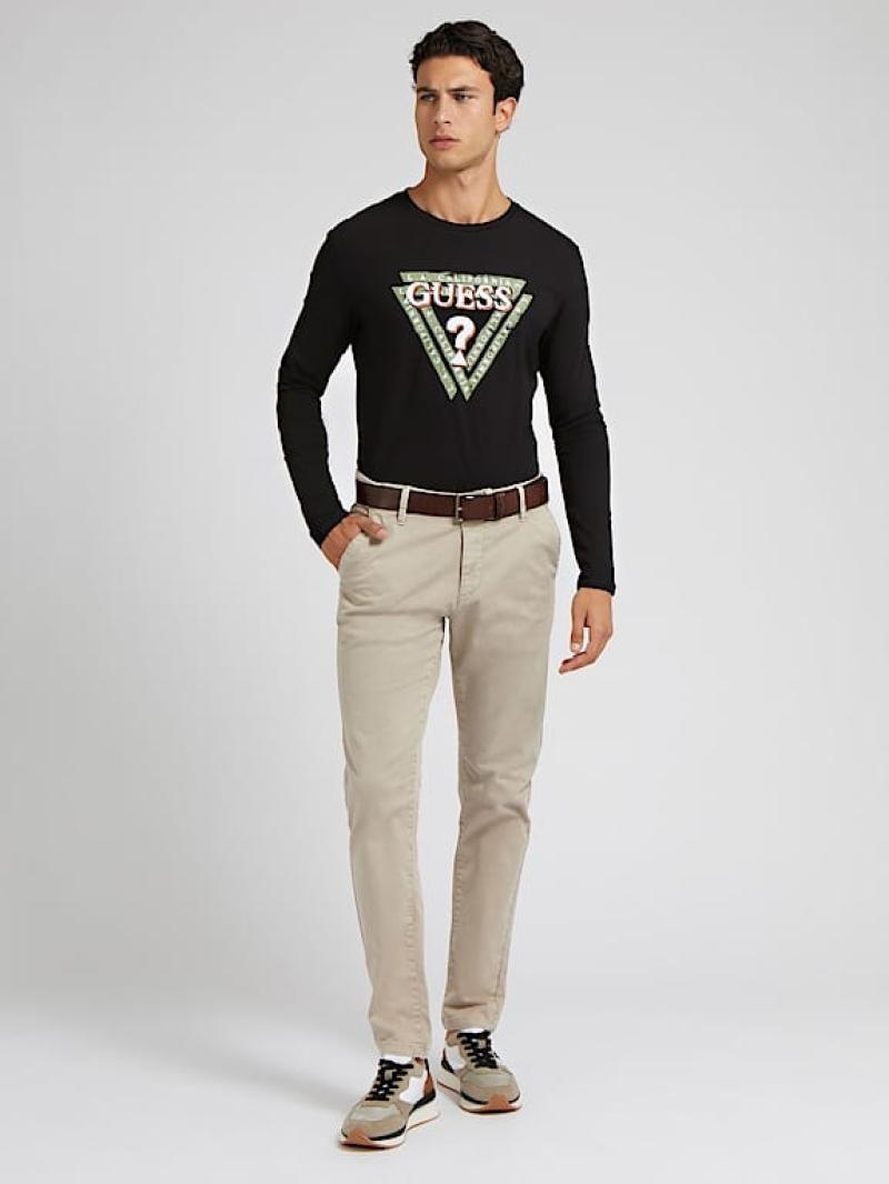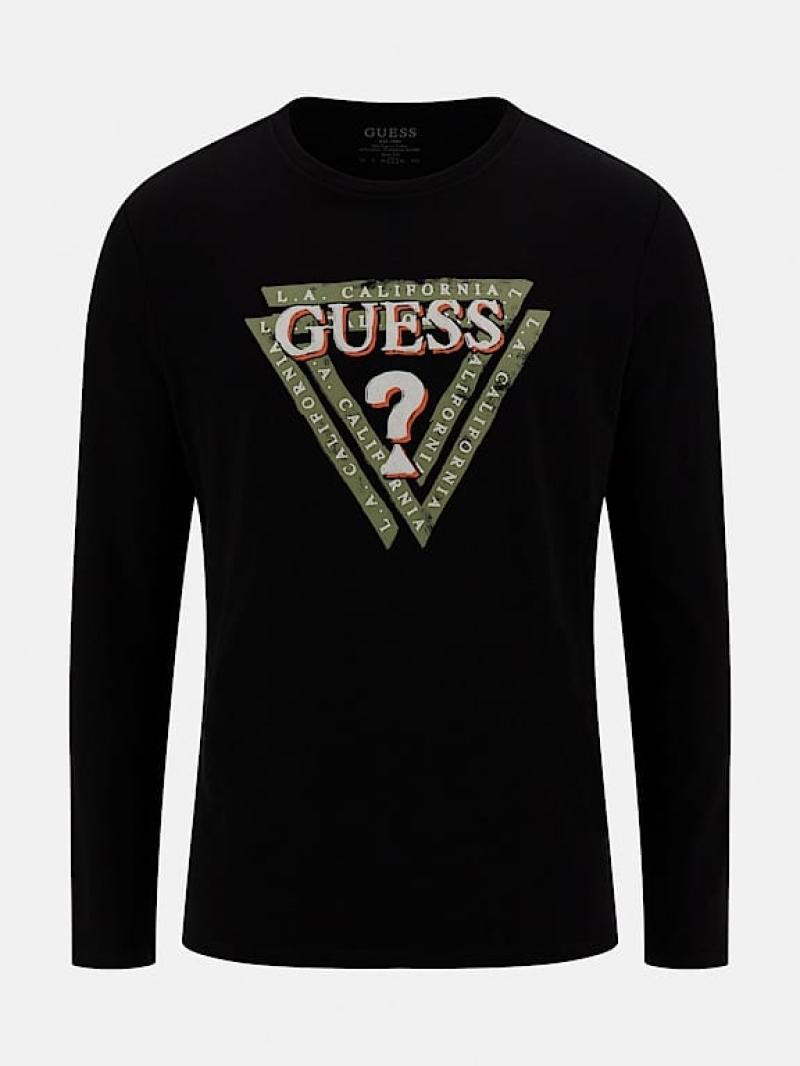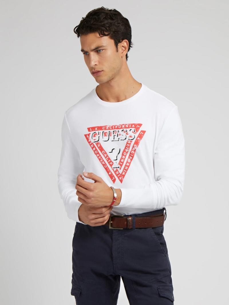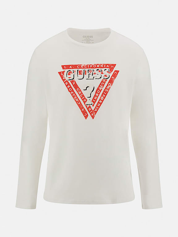 .تي شيرت من نسيج قطني..طوق دائري..شعار المثلث..ذراع طويلة..تناسب وثيق.