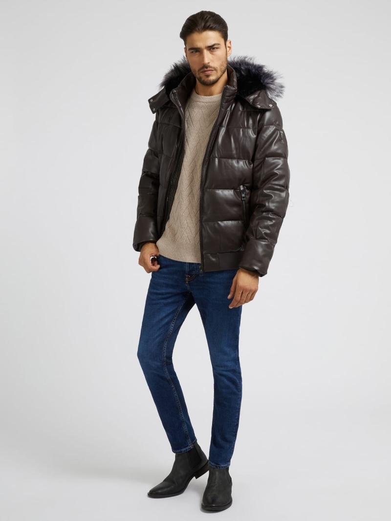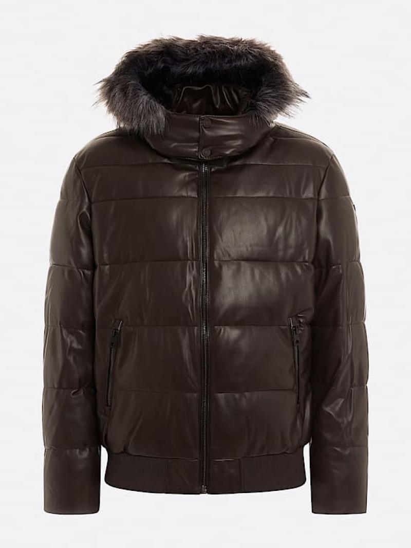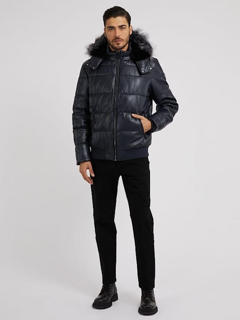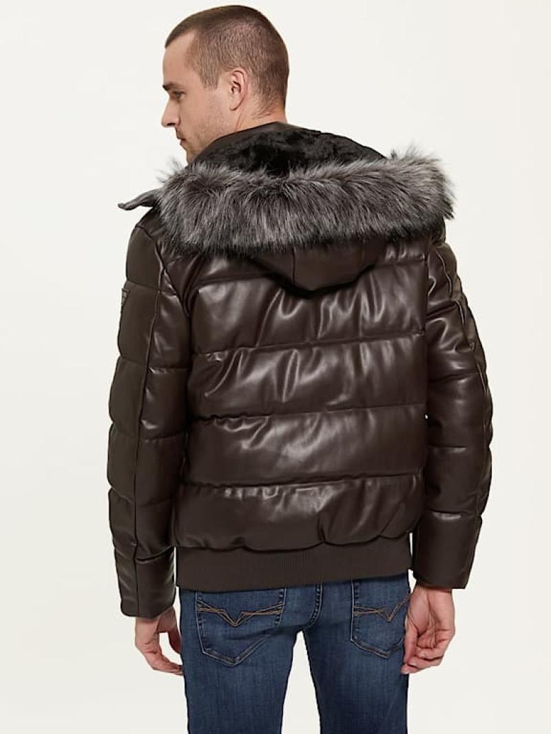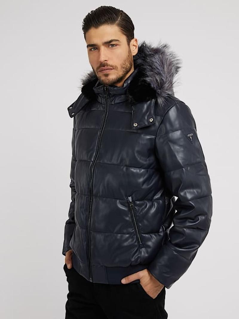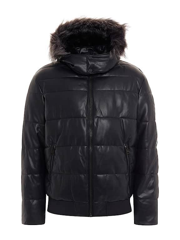 .سترة منفوخة من الجلد الصناعي..ذوي الياقات العالية مع غطاء للرأس..ذراع طويلة..إغلاق مع سحاب.
